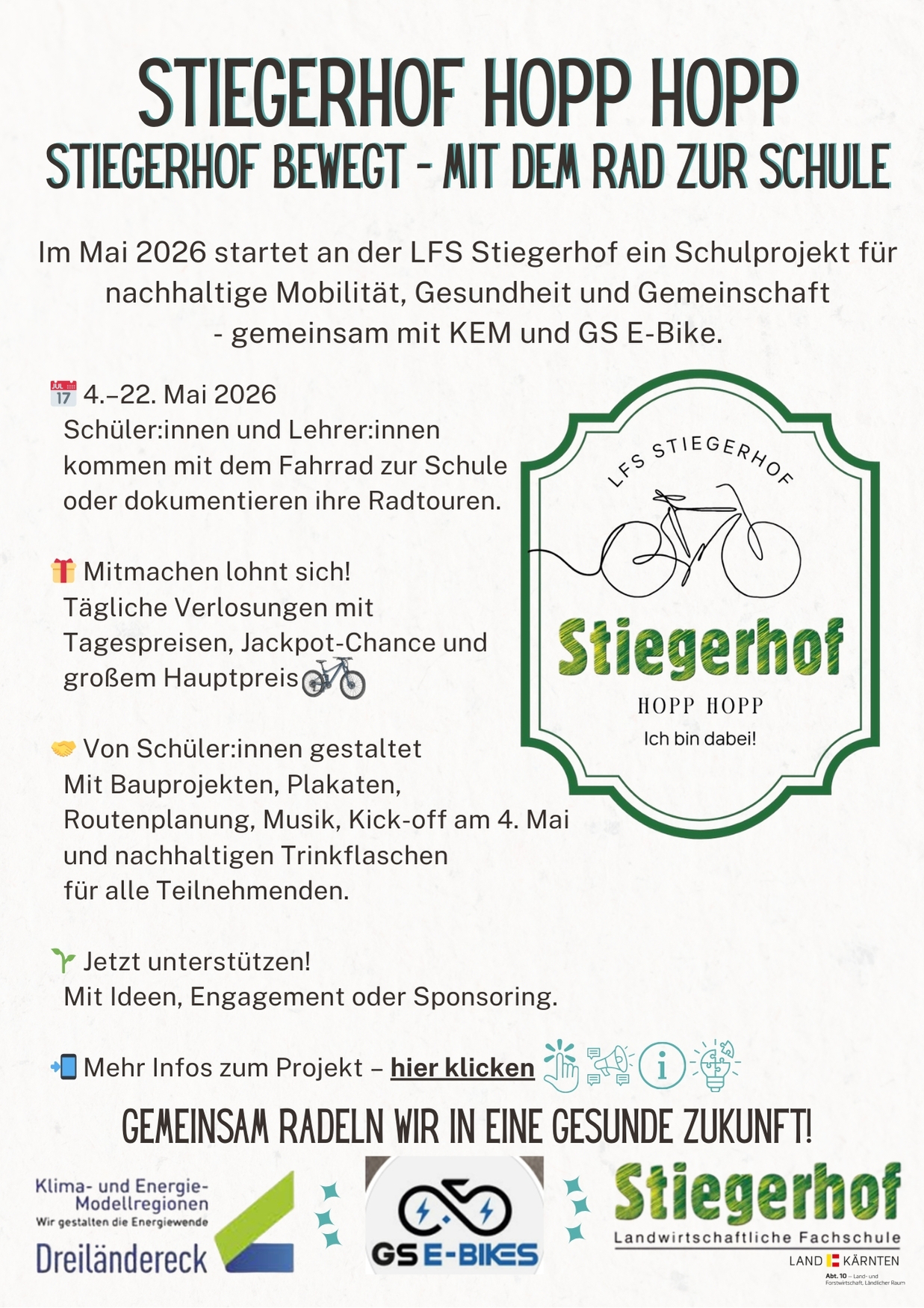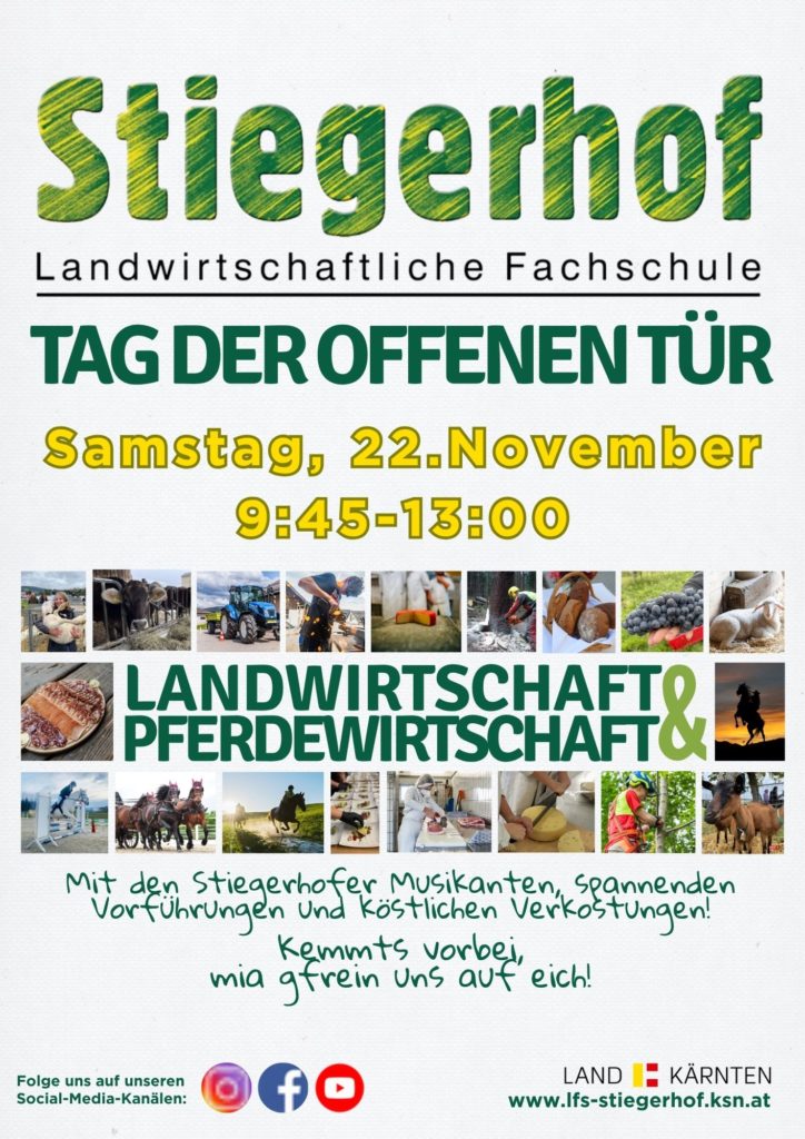 Tourismus + Pferdewirtschaft – eine Kooperation mit der KTS Villach: Die Tourismusmanagement-Ausbildung erfolgt an der KTS an vier Tagen pro Woche. Die Ausbildung am Stiegerhof in Pferdewirtschaft wird an einem Tag pro Woche geblockt.